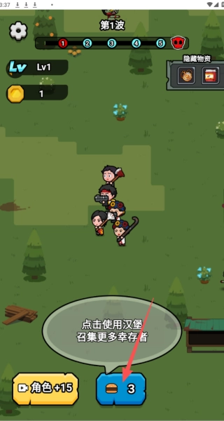 进入战场后,点击下方的汉堡图标按钮就能召唤更多幸存者,以此来扩大小队的规模。