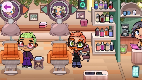 在理发店场景里,玩家会运用各式各样的美发工具,为游戏角色打造并更换不同款式的发型。