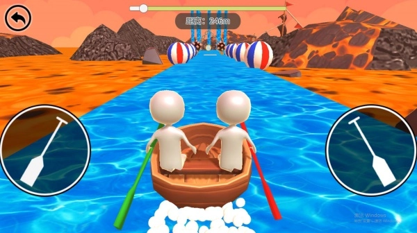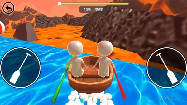 3、翻船的时候,队友们会慌慌张张地疯狂蹬腿挣扎;被漩涡卷走之前,肯定会互相拽着对方的脚踝不放。结算界面还会特意统计谁害你落水的次数最多,甚至支持一键生成用来甩锅的九宫格图片呢。每一关的赛道长度各不相同,玩家需从起点启程,和队友携手向终点全力冲刺。2、操作方法直观易学,玩家可通过左右滑动屏幕来操控船桨的划动方向。不过,若想让船只快速前进,核心在于队友间的默契配合。3、玩家还得精准把控划桨的力度:要是一直朝单侧用力,船只会偏离既定航线;力度过大可能致使船只倾覆,力度不足则可能让船身倒退。