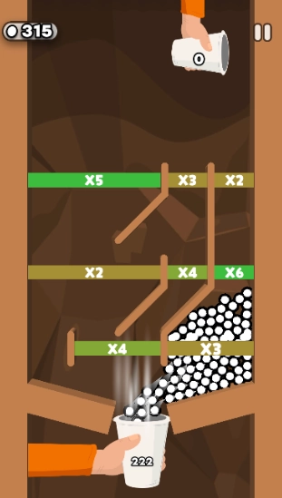 在主线的“茶杯”关卡里,玩家要把数量有限的小球投进装置。借助精准的投放操作以及机关之间的物理碰撞效果,让装置内的小球数量达到最多。