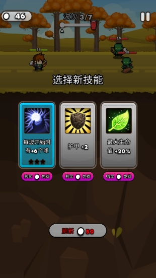 3、每一次顺利通过小球关卡,都会进入技能选择界面。玩家可以用得到的小球去“兑换”随机刷新出来的技能,或者对已有的技能进行升级。茶杯弹球环节考验着玩家的物理空间想象能力与策略规划水平,技能获取环节则存在随机性,需要玩家灵活应对。两种体验相互交织,既能锻炼脑力又充满意外惊喜。2、在需要深度思考的弹球谜题与操作简单的割草战斗之间找到了完美的平衡点。这种张弛有度的节奏十分适合利用碎片时间进行游玩。3、游戏采用了色彩鲜明的卡通美术风格,角色形象设计得十分可爱。当小球数量倍增时,满屏跳动的数字以及战斗过程中华丽的技能特效,为玩家提供了持续且强烈的正面反馈。