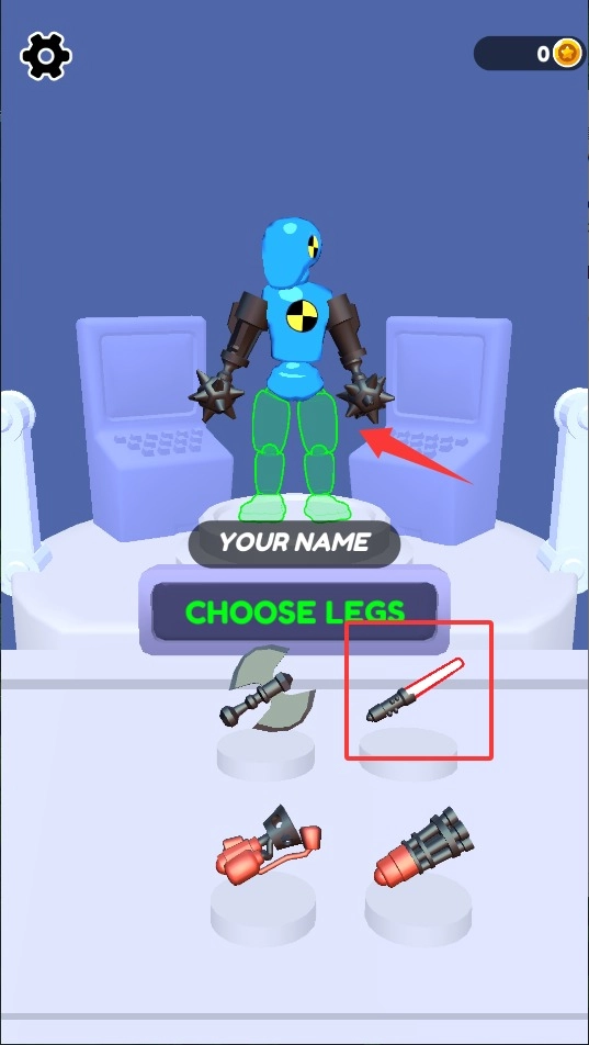 1、点击屏幕选择不同部位的装备,将相同品质的部件进行融合升级,打造出属性更强的战斗布娃娃角色。