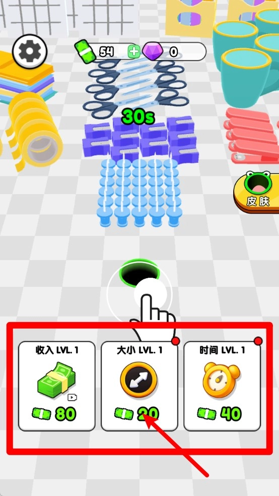 3.使用绿色钞票可升级能力,包括提升吞噬收入、扩大黑洞大小与延长操作时间,有策略地分配资源能让成长更高效。