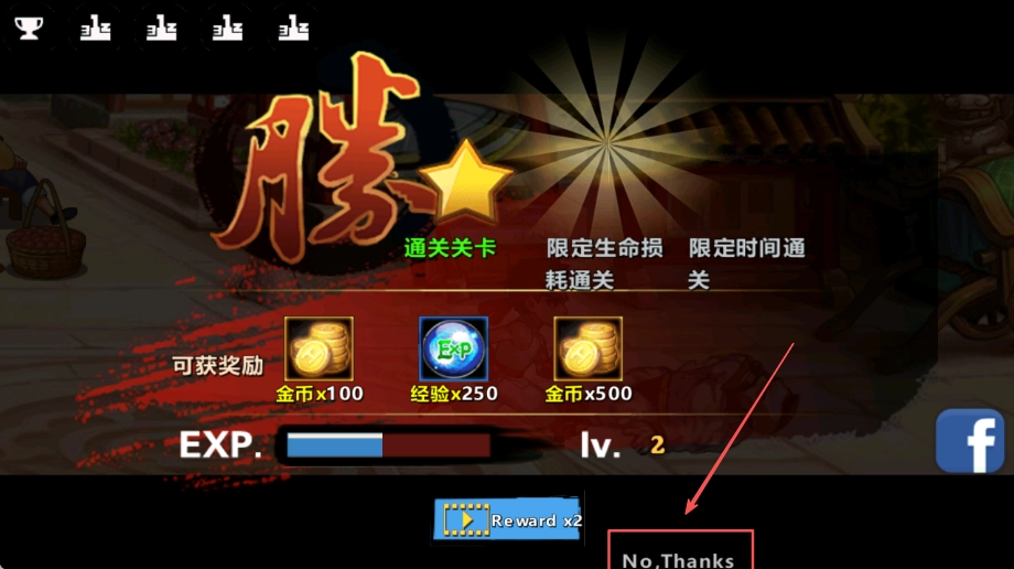 成功击败对手后通关当前关卡。