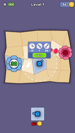 用金币购买炮台,把它们布置在地图上就能攻击粘液军团。调整炮台的摆放位置可以改变粘液的移动路径,这样能延长敌人的行进路线,帮你争取更多优势!