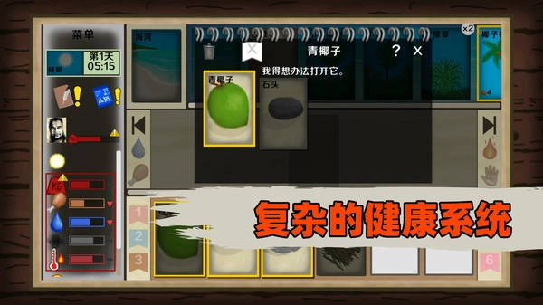 2.生存状态管理:要对饥饿、口渴和健康指数进行持续监控,妥善规划饮食与休息的节奏,只有维持稳定的状态,才能拥有更长的生存时间。