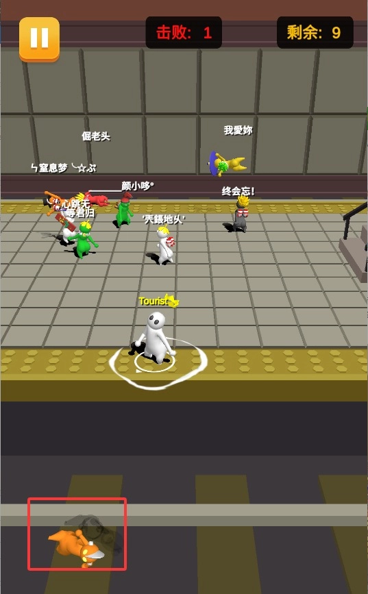 1、通过滑动屏幕操控角色在人群里穿梭移动,借助灵活的走位躲避其他玩家的攻击,伺机寻找最理想的出手机会。