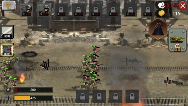 积累资源以等待进攻的时机,迅速解锁全新的兵种,指挥全体士兵协同发起攻击,从而突破敌人的防线。