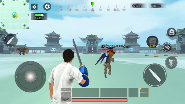 场景借助仙宫的宫殿、石柱等地形作为掩护,通过伏击对手或躲避攻击的玩法,结合传送门来提升生存与攻击能力。