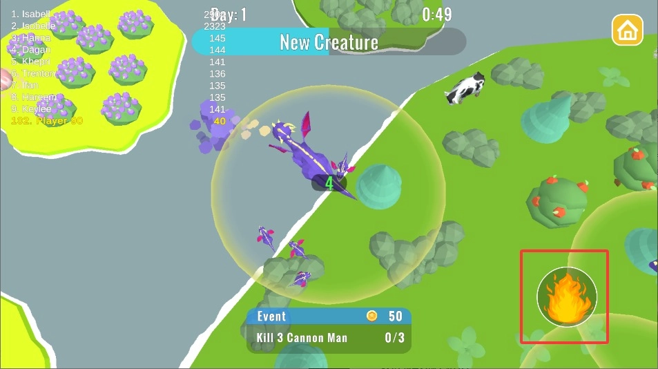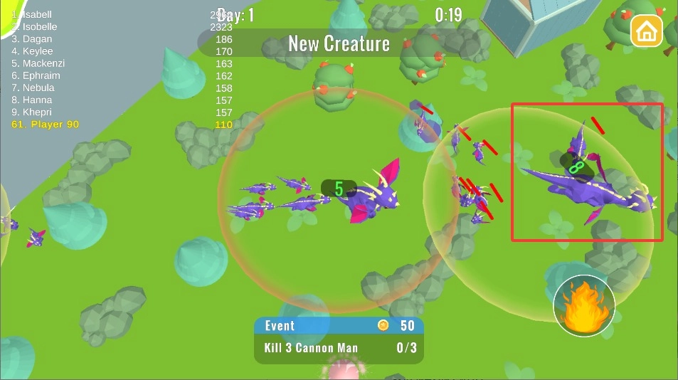2、点击攻击按钮释放俯冲或远程技能,把控好最优的进攻距离与角度,保证每一次出击都能精准命中对手。