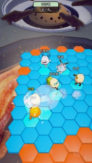 别靠近煎锅边缘,尽量待在中心区域,这样能降低被对手从两边夹击打飞的可能性。