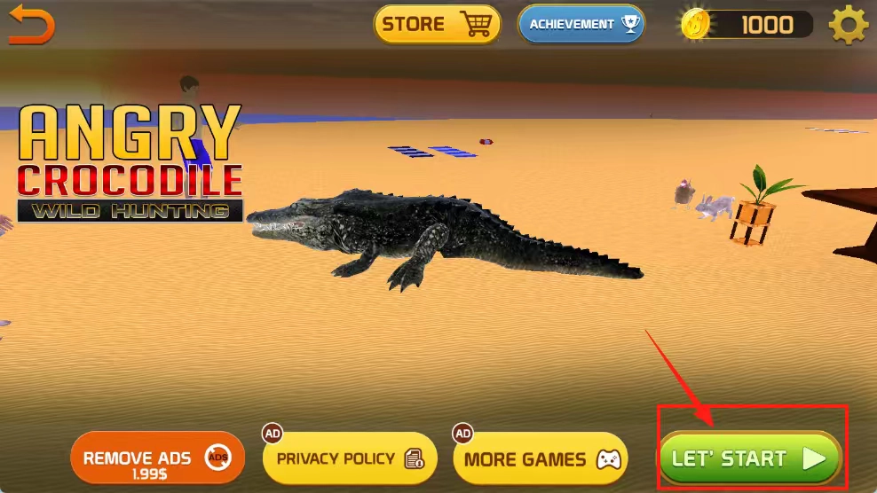 点击绿色的LET'S START按钮就能进入游戏啦,先熟悉一下界面的布局,还要注意初始的100金币以及商店、成就这些功能的入口位置。