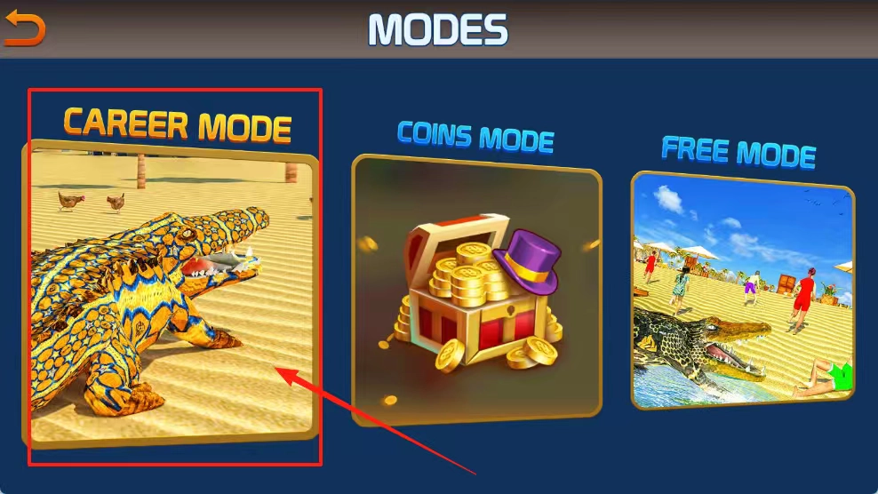 你可以选择红色框标注的CAREER MODE生涯模式,也能依据个人喜好切换到金币模式或自由模式,以此明确游玩的方向。
