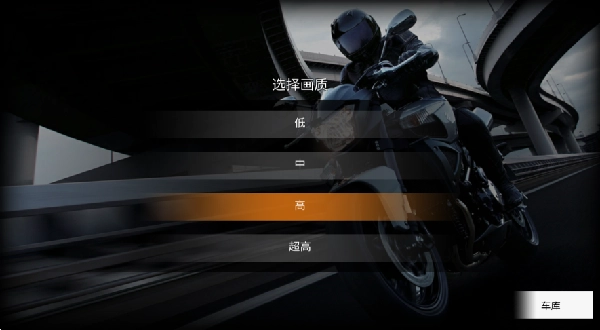 同意用户协议后,挑选画质选项就能开启真实摩托驾驶玩法的体验之旅了。