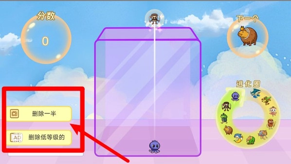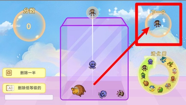 3. 预览下一个动物:点击右上角的“下一个”提示,就能查看即将出现的动物种类,这样可以提前规划好放置位置,让合成操作更高效。