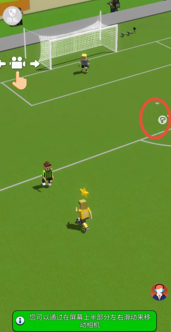 3、在比赛的准备环节,要确认好对阵双方的相关信息;开球之后,可以借助触控操作来调整镜头的视角;队友所在的位置,则会用特定的标识进行标注。