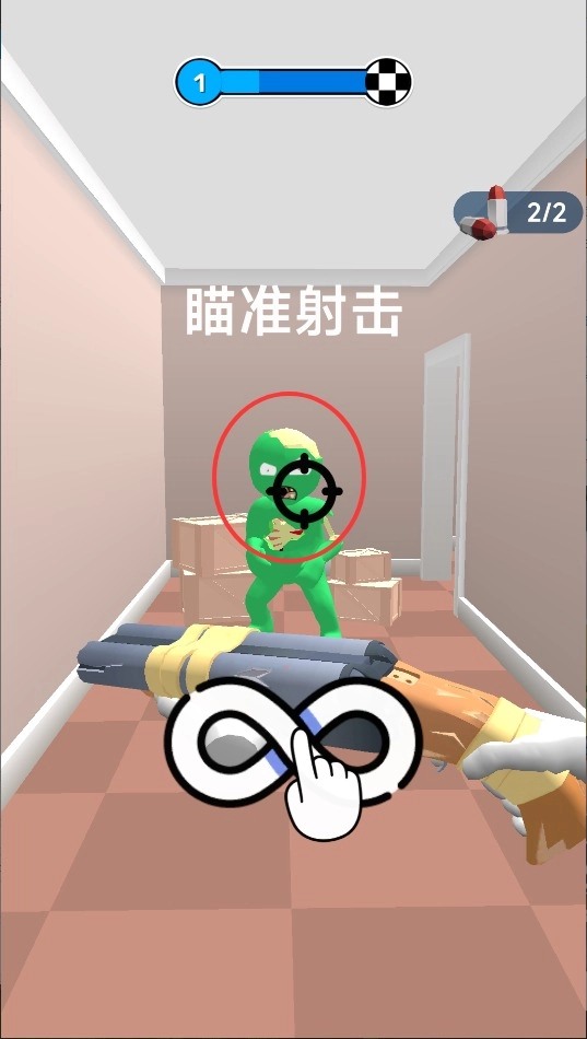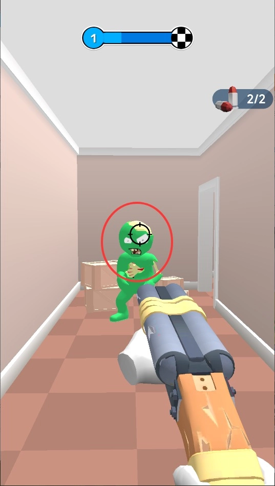 2、长按屏幕可激活瞄准模式并锁定目标,松开手指就能发射子弹击退靠近的丧尸。