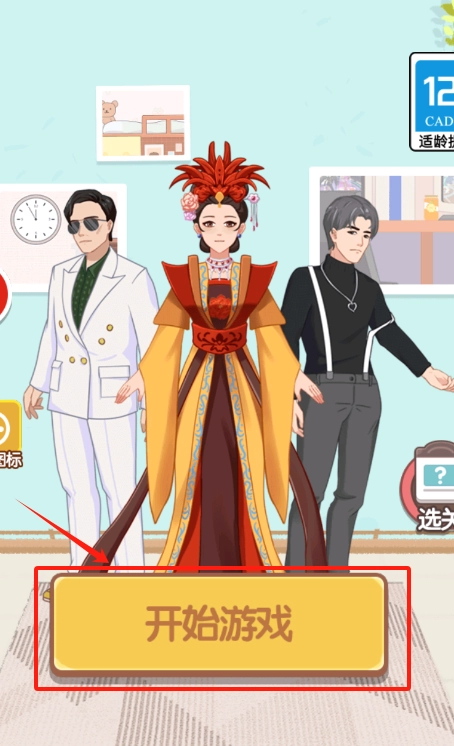 点击游戏界面上的黄色“开始游戏”按钮,即可进入核心玩法;若想自主选择挑战关卡,可通过右下角的选关功能实现,开启你的换装之旅。