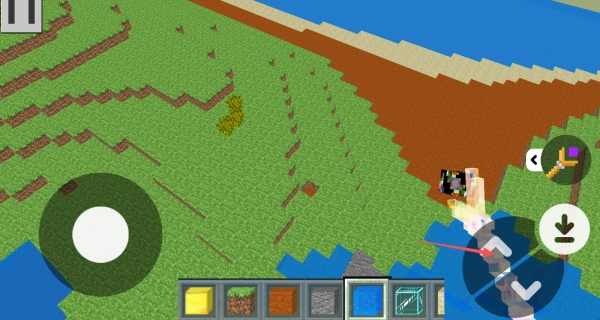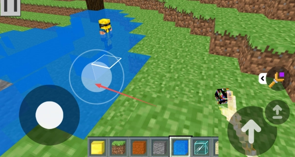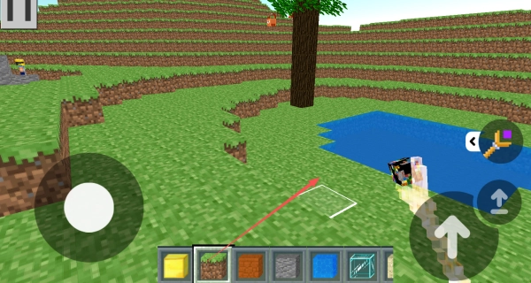 首先点击下方道具栏里要使用的方块,接着用左侧虚拟摇杆操控角色移动到目标区域,然后点击右侧的放置按钮,把方块放到地面的指定位置,这样就能完成基础建筑的初步搭建了。