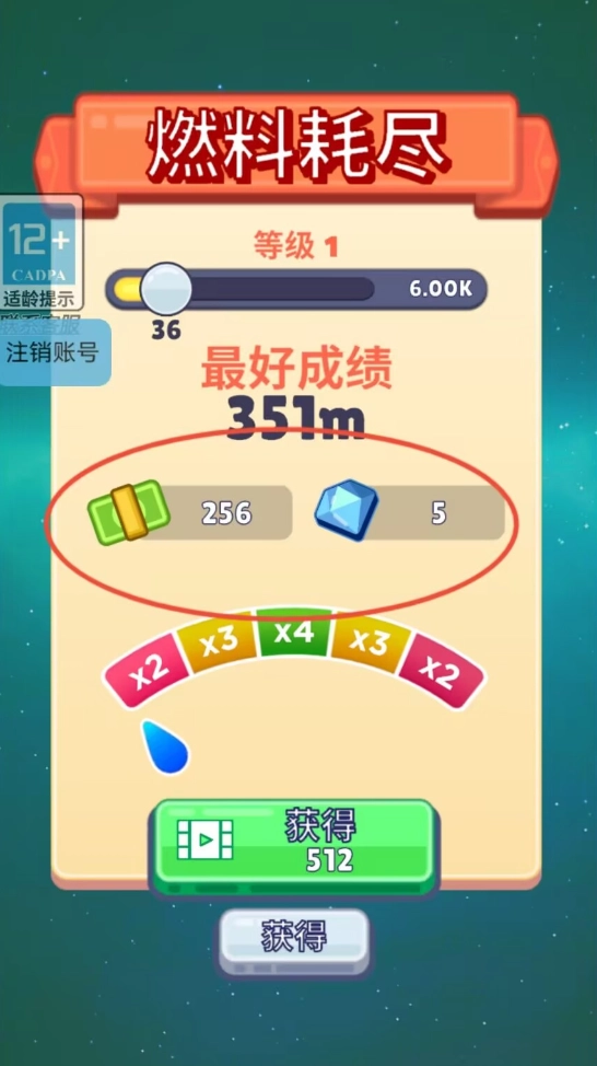 3、燃料一旦耗尽,本次航行便会终止,结算界面将呈现本次的飞行距离记录、等级成长进度以及所获得的资源奖励明细。