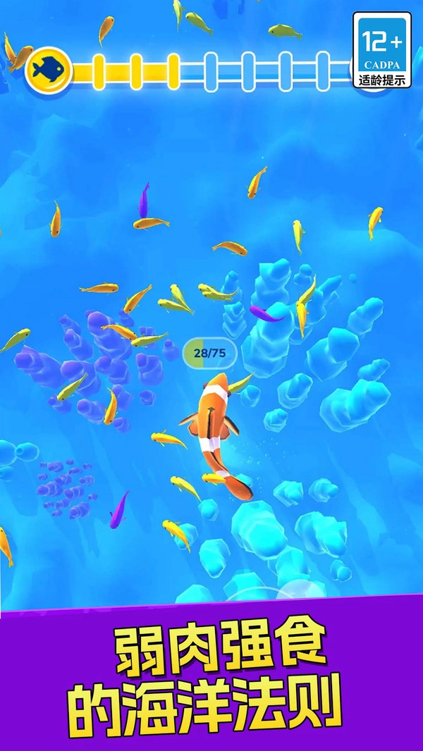 1. 吞噬成长机制:延续经典的吞噬成长玩法,玩家需要持续吞食体型小于自身的鱼类,以此逐步增大自身的体型、增强实力,体验从弱小逐步蜕变为强大的畅快感受。