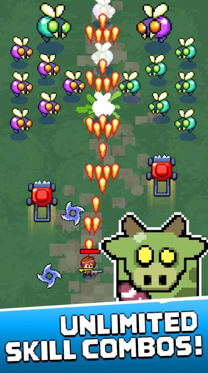 3、采用幽默风趣的美术风格,搭配上搞怪逗趣的敌人形象,让末日背景的世界也洋溢着欢乐趣味。1、操控角色移动并触发自动攻击,同时规避敌人的攻势。