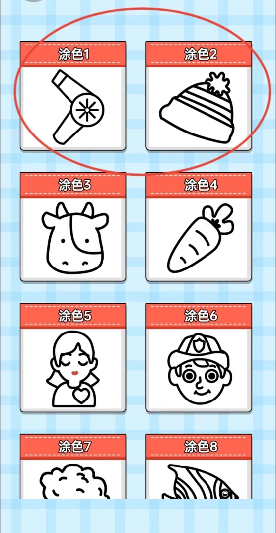 新手初次体验时,可先点击调色板旁边的图案库,从简单到复杂挑选适合练手的线稿来开展创作。