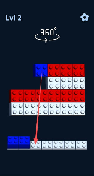 关卡构建依托3D立体场景,砖块布局错落有致,需要灵活切换视角来观察并判断匹配时机。
