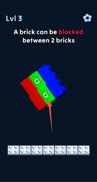 这是一款砖块匹配消除游戏,需要精准地将三块相同的砖块配对消除,以此释放被围困的砖块,从而推进关卡。