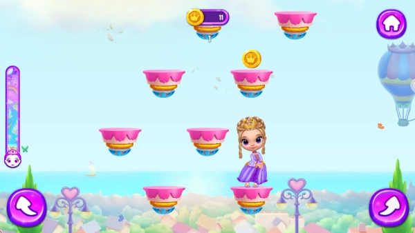 像图中展示的这样,我进入了首个小游戏关卡,需要操控左右两边的跳跃按钮,助力公主向上弹跳,争取在时间结束前跳到更高的位置!
