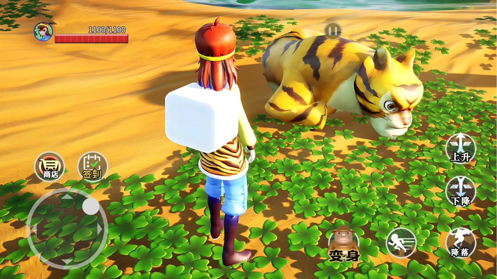 2、和NPC互动后会触发剧情对话并领取任务,任务的具体信息会显示在顶部状态栏,右下角则配备了攻击、变身以及加速等战斗相关的指令按钮。