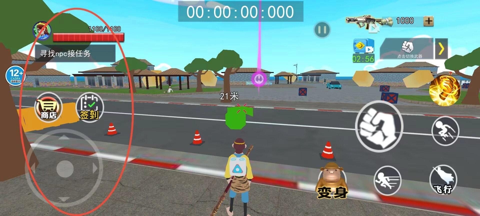 1、游戏界面左侧设有角色状态、任务目标与操作区域,开局时需要操控角色朝NPC方向移动,屏幕会实时显示目标距离的提示。