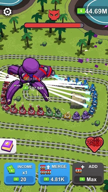 2.在游戏过程中,通过击败敌人或者破坏障碍物,能够获取金币与材料;这些资源可用于升级火车头和车厢,进而提升整体攻击力,帮助玩家更好地应对后续更高难度的挑战。