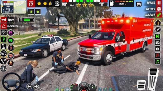 3、操控救护车的移动,通过加速、刹车和转向键进行精准操作。