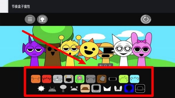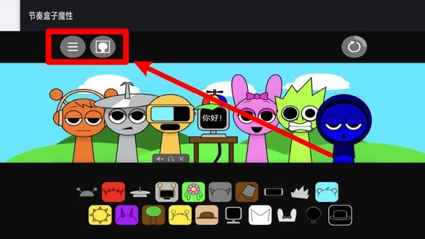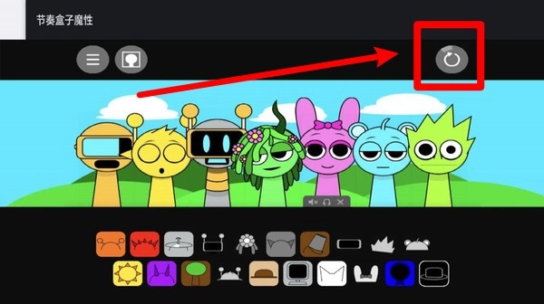 1.点击右上角圆形箭头图标即可重置场景,快速清除当前所有角色与节奏内容,方便重新开始创作你的专属音乐。