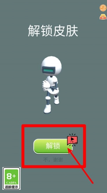 比赛结束后,你可以选择解锁新皮肤。点击“解锁”按钮并观看广告,就能获得全新的角色造型来使用。