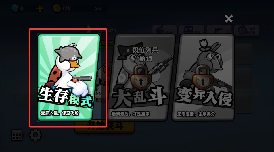 1、 经典大逃杀玩法紧张刺激,20只鸭鹅齐聚赛场展开激烈竞技,玩家需收集各类资源来强化自身装备,最终成为唯一存活的胜利者,以此证明自己的强大实力。