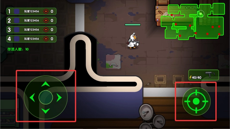 3、用左手操控摇杆来移动大白鹅,右手点击射击按钮就能发射各类趣味搞怪的道具,要留意提前预判目标的走位,这样能提升射击的命中率。