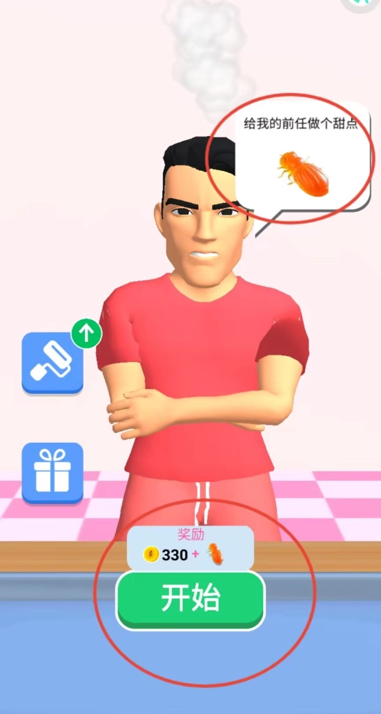 2、游戏过程中右侧会显示顾客需求订单,关卡奖励信息位于开始按钮上方,点击后进入制作环节。
