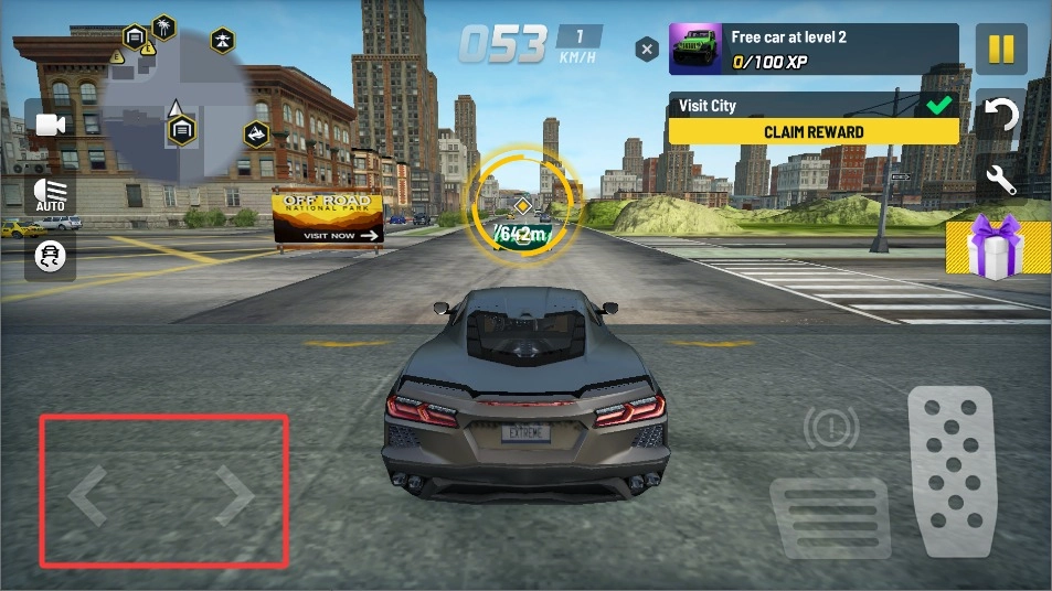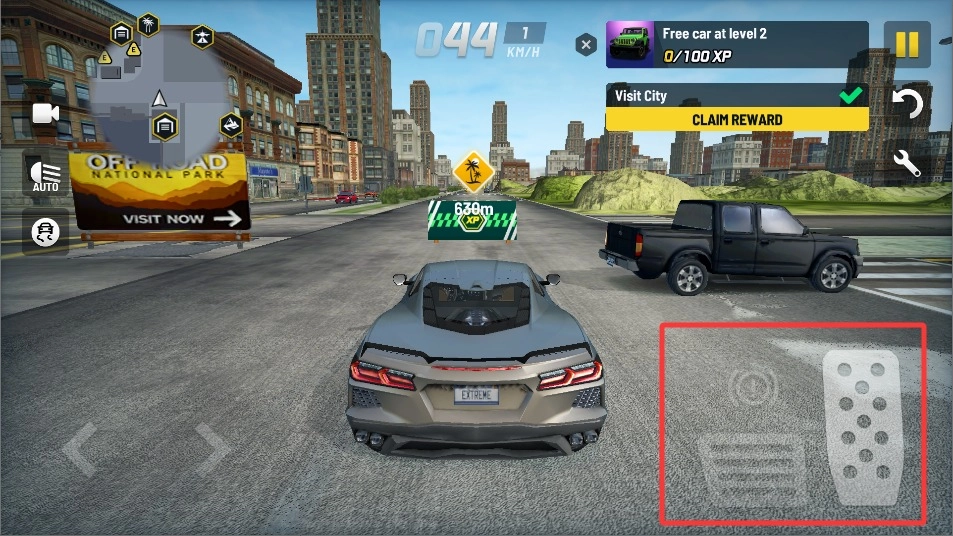 屏幕下方配备刹车与油门按键,需依据路况合理调控车速,遇到急转弯时应适当减速以保障安全。