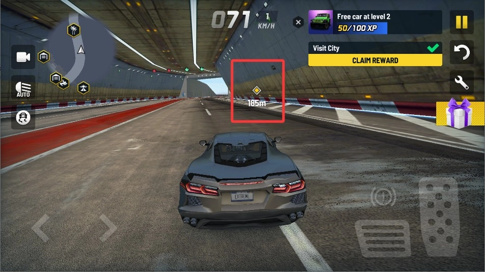 4、根据导航指引驾车前往地图上的标注地点,只要在规定时间内抵达目标区域,就能完成当前关卡的挑战。