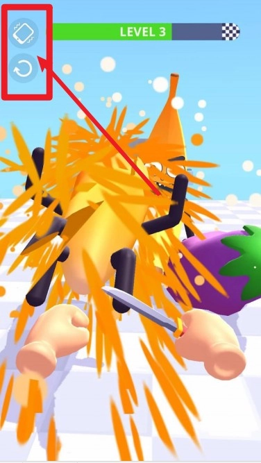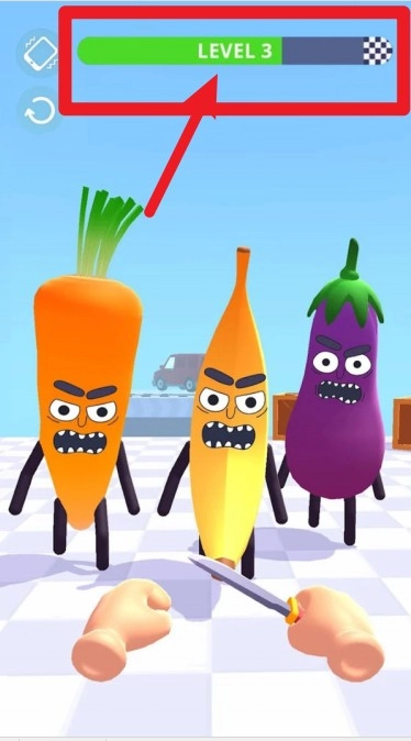3. 玩家将以第一人称视角持刀对敌人发起攻击,通过滑动屏幕来掌控方向,当遭遇愤怒的蔬果时,必须迅速做出反应并果断出击。