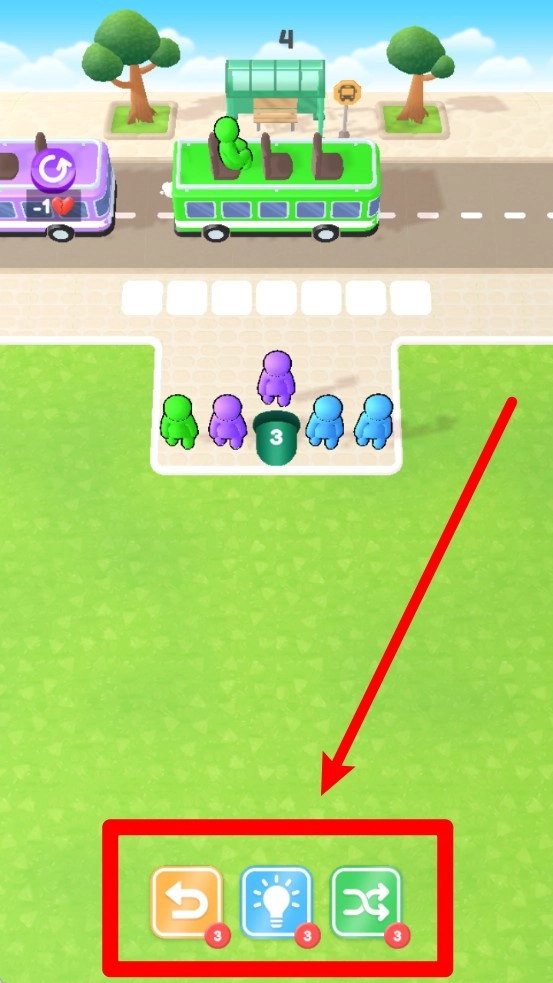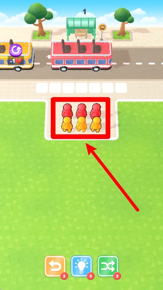 1.色彩搭配独特:这一关特上头采用醒目的颜色组合,使乘客与巴士的匹配更加直观,营造出充满趣味性与视觉冲击的画面表现。