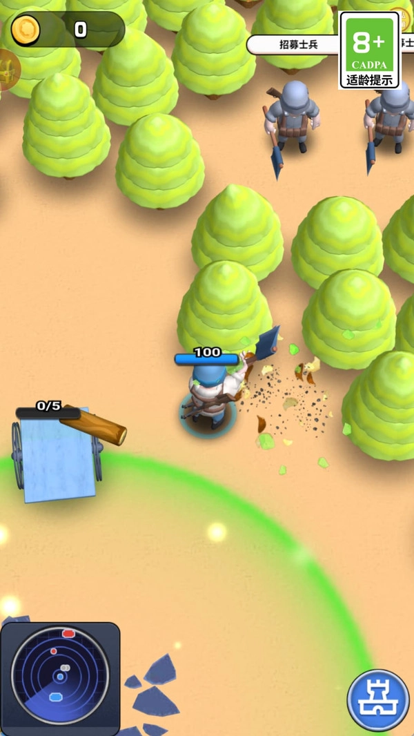 2.召集士兵组成小队,使用木材来提升防御与攻击能力,利用雷达观察周边情况,确保每一步行动更加稳妥。