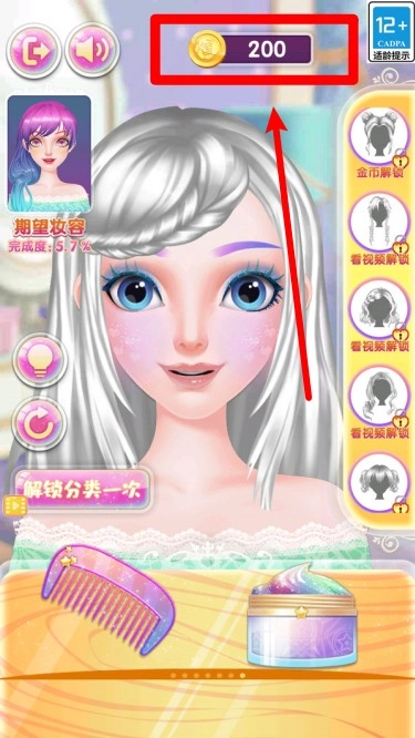 界面顶部会展示金币数量,玩家能够通过完成化妆或穿搭任务来积攒金币,这些金币可以用来解锁更多高端化妆品和精致饰品。