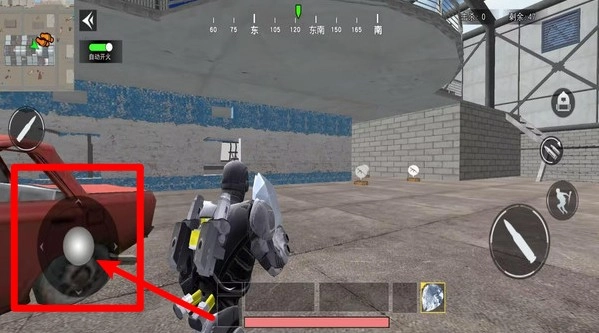 3.位于左下角的虚拟摇杆是用来控制角色移动的,玩家能够通过滑动摇杆来快速转变方向,从而完成走位和战术上的调整。