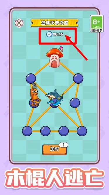 1. 在木棍人逃亡关卡里,顶部会显示当前的倒计时时间,玩家得在规定时间内完成线路连接,这样才能成功逃离。