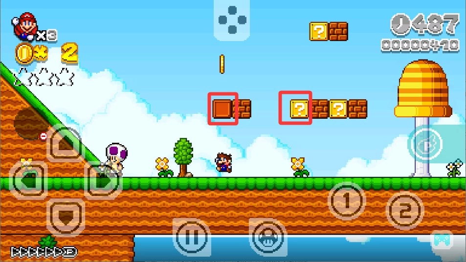 3、看到悬浮的砖块时就跳起来去顶,这样有机会获得金币、蘑菇或者星星之类的强化道具,能帮助你更好地应对接下来的挑战。