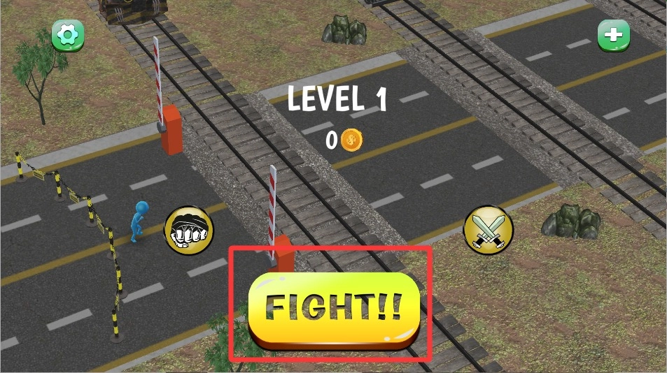 1、进入火柴人铁路格斗后,点击屏幕中央的启动按钮,即可开启紧张刺激的铁轨对战挑战。