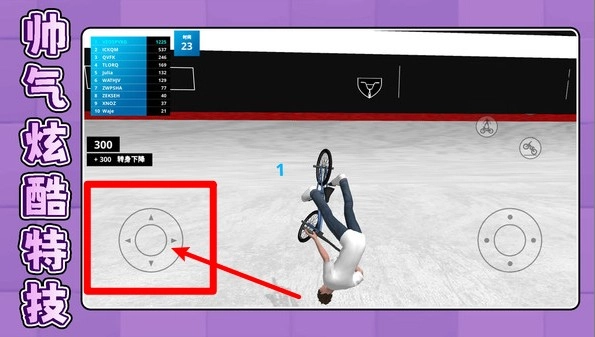 2. 利用左侧的虚拟摇杆来操控角色的移动方向,再配合技能按钮,就能完成各类帅气又炫酷的极限特技动作。